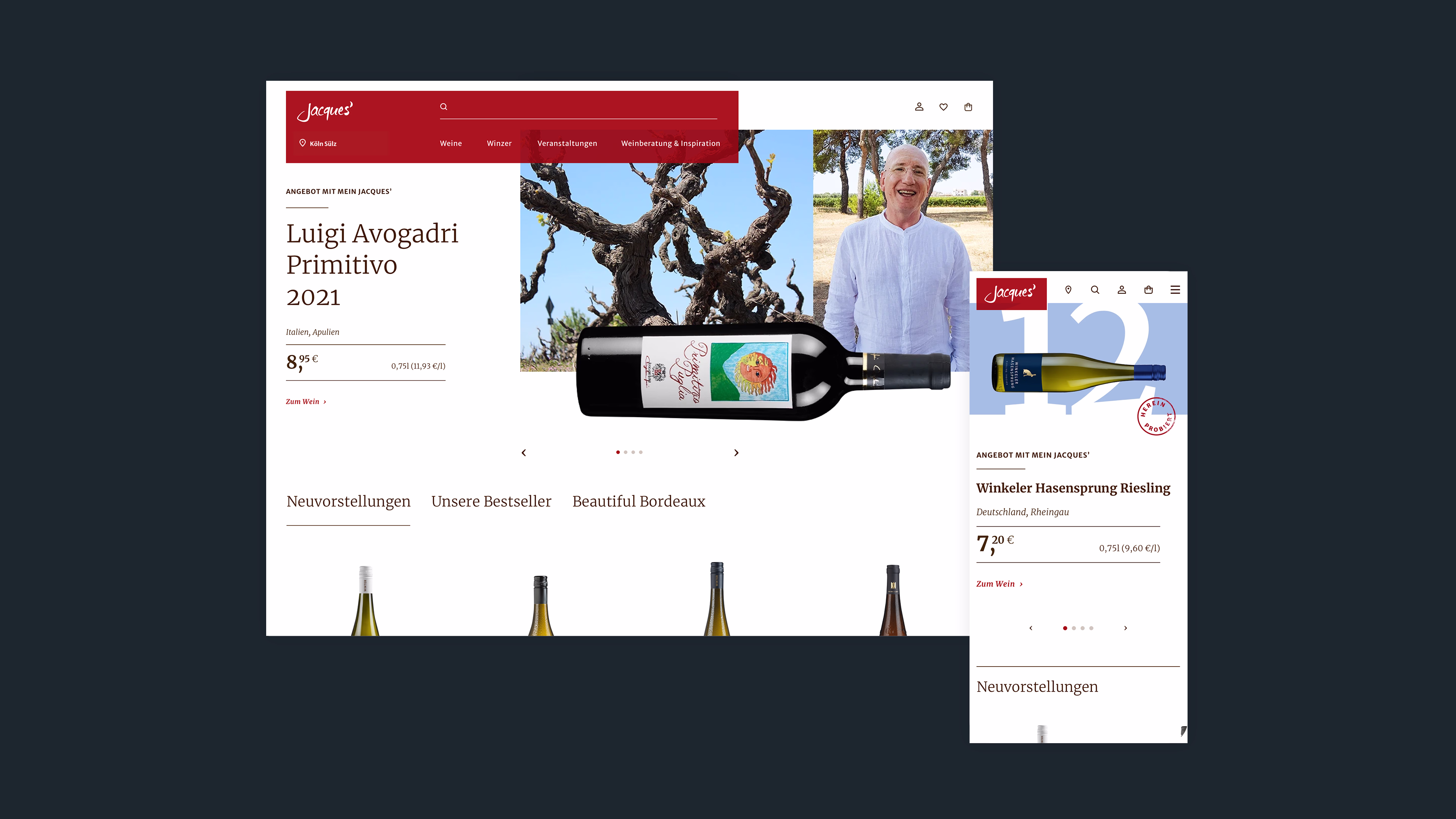 We are developing the complete digital platform for Jacques’ Wein-Depot, including an eCommerce connection. Find out more about our mission, branding & design, customer experience and how we are establishing a new sales channel with Jacques'.